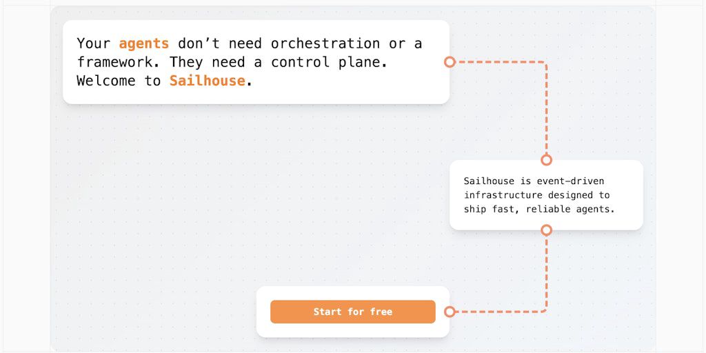 Sailhouse is a developer focused platform for building event driven applications. It’s the easiest and fastest way to build reliable, scalable agents and applications.
