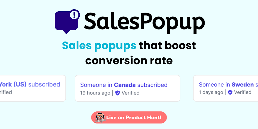 SalesPopup.io - The fastest way to boost your conversion rate | Product Hunt