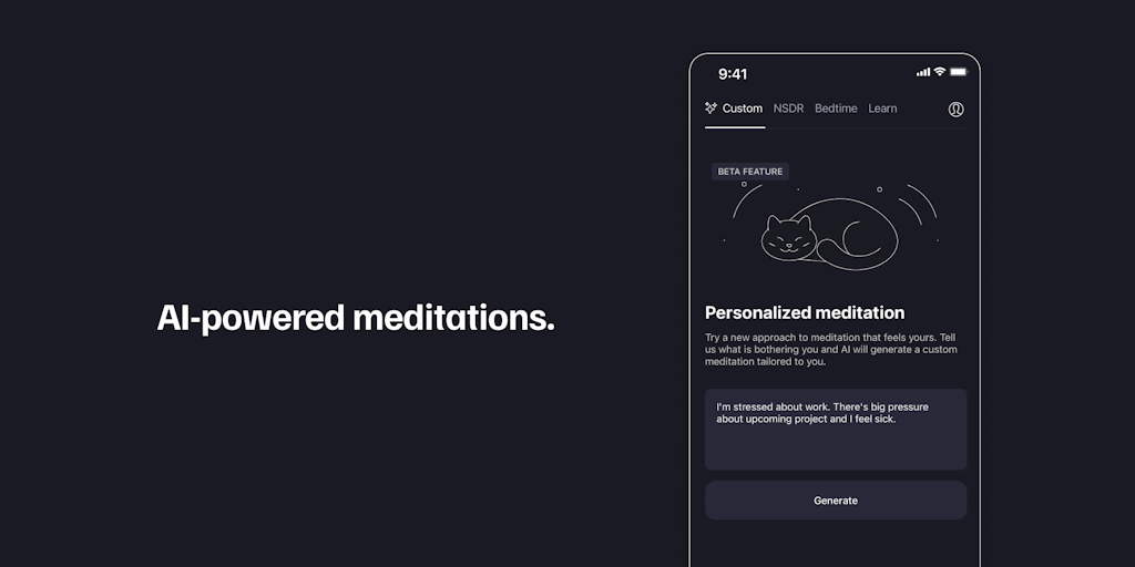 Let AI design your custom NSDR meditation – this practice helps overactive mind to slow down and resets nervous system. Designed for people who can't turn off their brains :)
