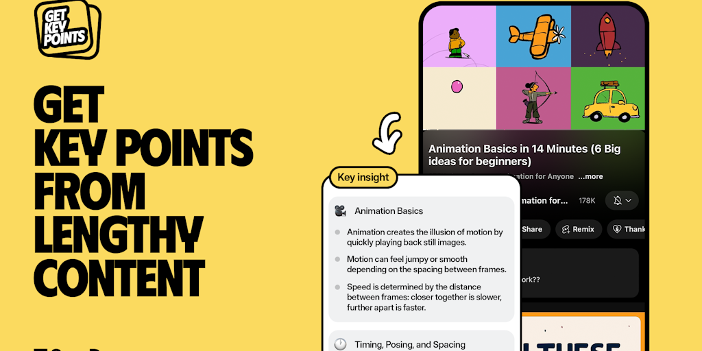 Instantly summarize and ask questions about saved articles and YouTube videos on your phone. Then save them to your knowledge hub to easily find them later.