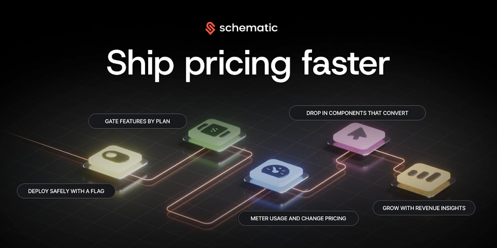 Schematic is a modern monetization platform. Drive revenue with usage based billing, support sales and product lead deals, and save time with drop in components like customer portals, checkout flows,
