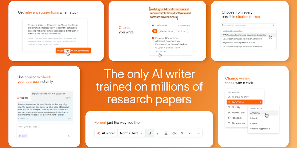 The world's leading research assistant now features a powerful new AI writer that crafts cutting-edge content with in-text citations, accurate autocomplete, and supports 75+ languages. Trusted by 4.5M