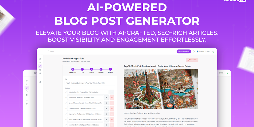 Boost your WordPress blog with Sebora.ai! Effortlessly generate, schedule, and publish SEO-optimized articles. Elevate engagement and visibility instantly. Start free and simplify your blogging journe