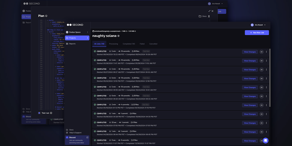 Second provides automated codebase maintenance, including codebase migrations and upgrades. Connect Second to your GitHub repo, select a maintenance module like AngularJS to React, review the AI agent