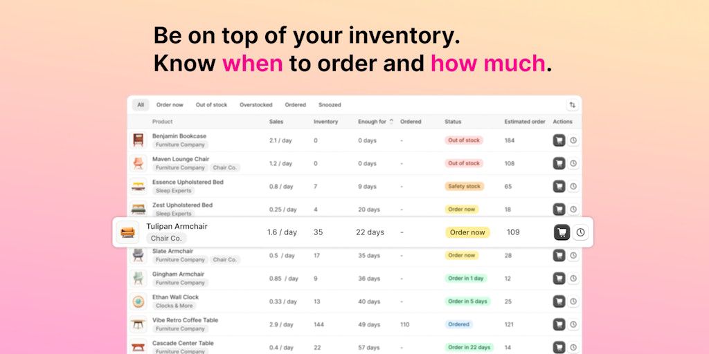 Sensible Inventory Forecasting - Inventory planning for small / medium size Shopify stores | Product Hunt