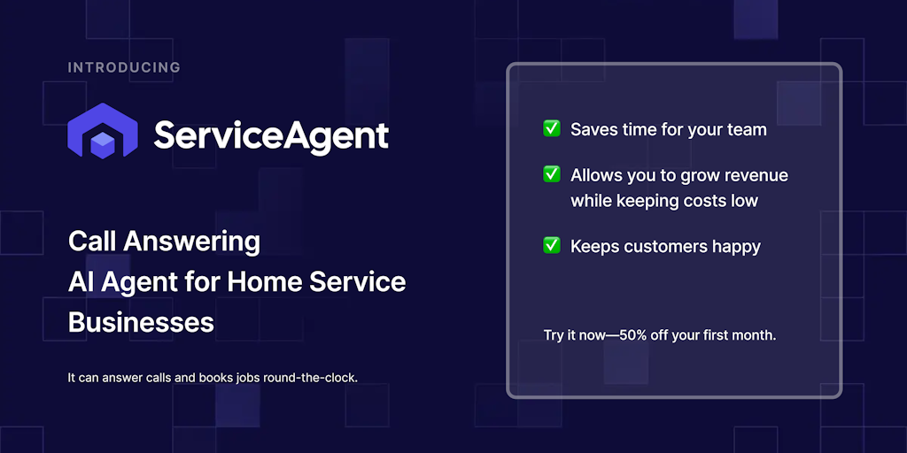ServiceAgent is a Call Answering AI Agent built specifically for home service businesses. Trained on industry-specific data, conversations to book appointments, handle customer inquiries, and capturin