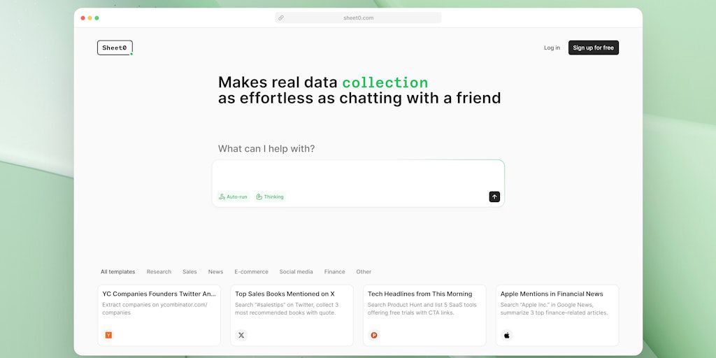 YOLO mode comes to spreadsheets! 💪🏻 Ask a question, list your sources, and let hit auto-run: sheet0’s cloud browser grabs data in parallel, cleans it, and produces an interactive, tidy sheet for your