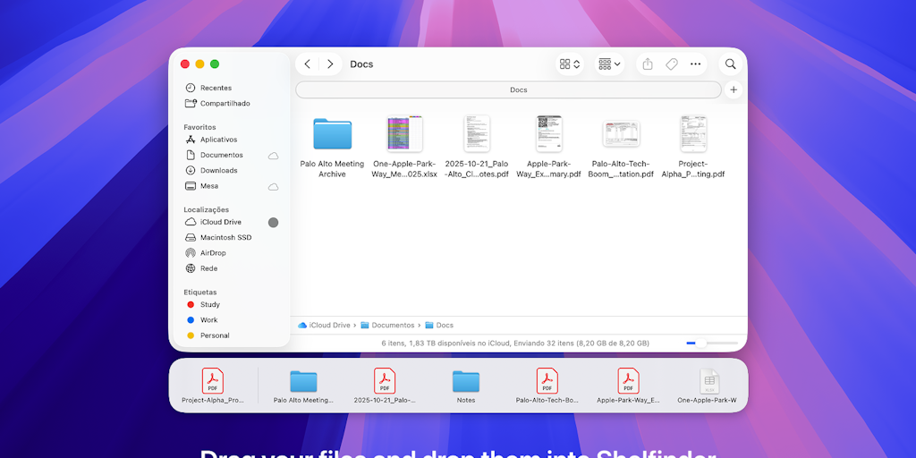 Shelfinder app is a floating shelf for macOS that lets you collect, pin, and move files instantly. Looks native. Works instantly.
