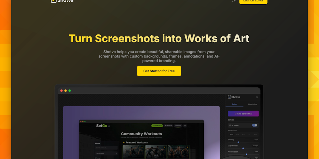 Shotva instantly transforms plain screenshots into polished, share-ready visuals. Add beautiful backgrounds, drop shadows, and custom branding–perfect for social posts, presentations, or product showc