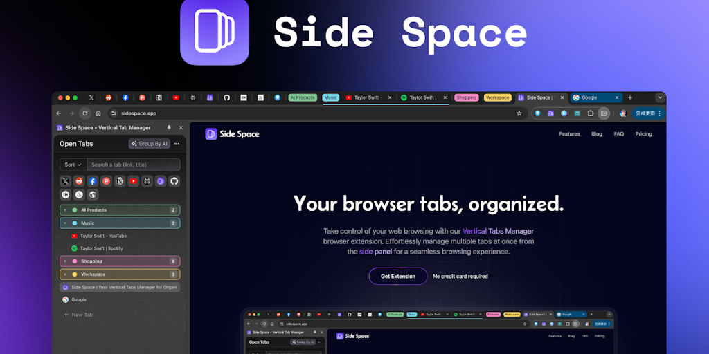 Side Space - Your AI-powered vertical tabs manager for browsing | Product Hunt