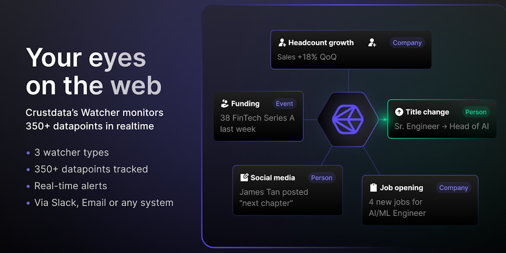The only tool that monitors 350+ B2B datapoints and alerts you in real-time for you to take action.