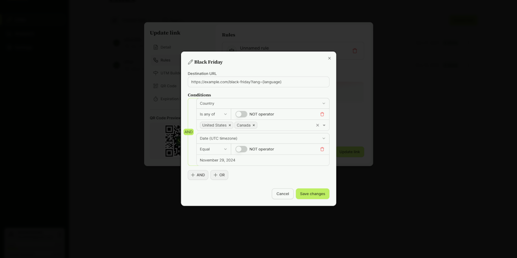Sihai allows you to create a short link to route your users to different destinations based on their country, time, date, and more.