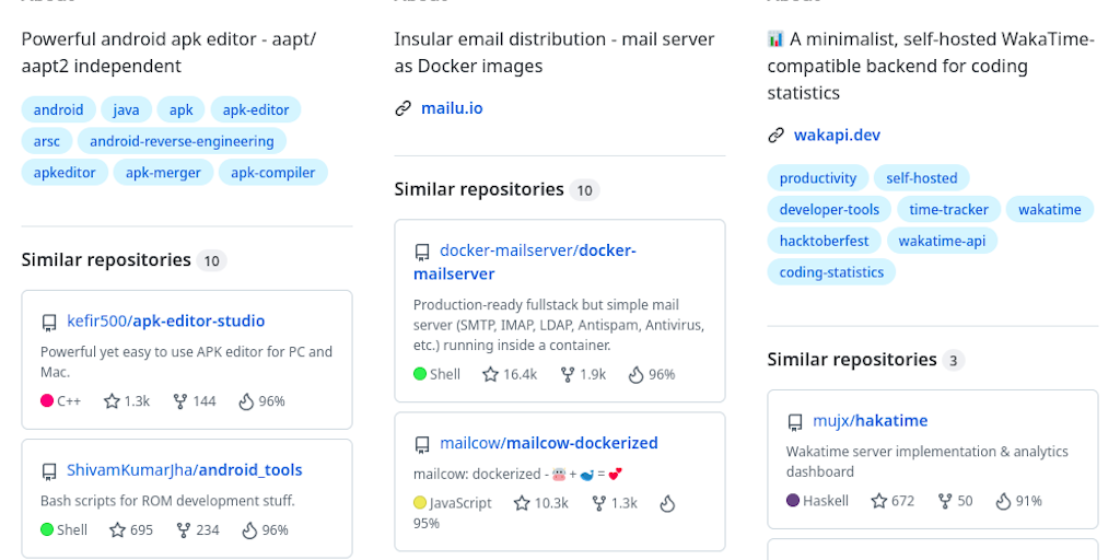 SimRepo: Shows similar Github repositories in the sidebar | Product Hunt