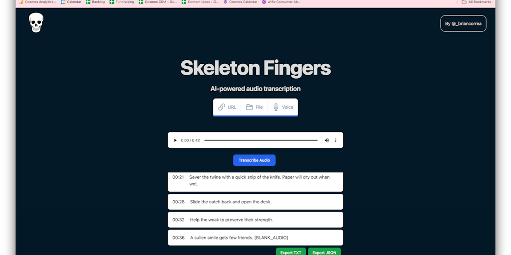 Skeleton Fingers - AI-powered audio transcription | Product Hunt