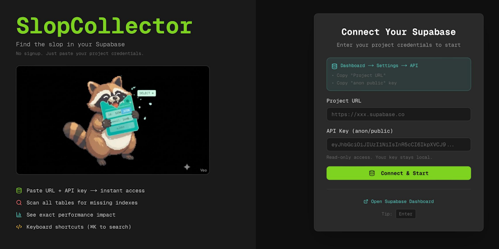 SlopCollector: Find the slop in your supabase | Product Hunt