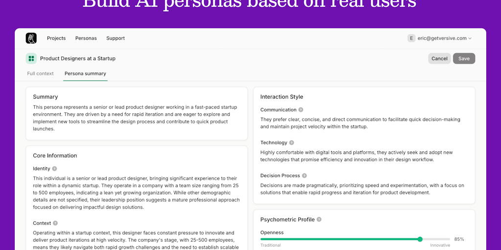 Snap lets you run instant usability tests with AI personas. Drop in a prototype or website, and your custom AI personas will test them like real users. Get results in minutes with transcripts, recordi