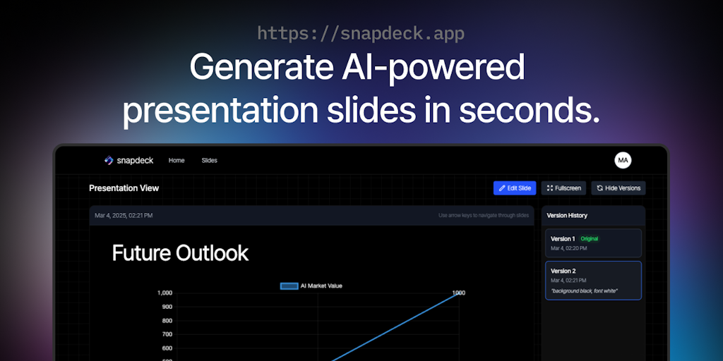 Snapdeck beta - Generate presentation slides in seconds with AI | Product Hunt