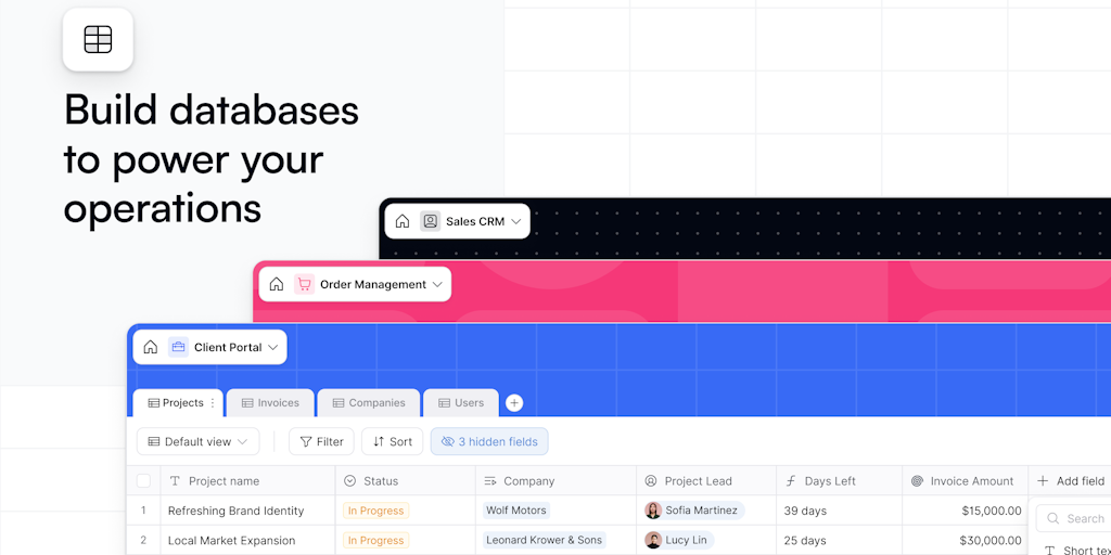 Softr is a no-code platform that turns your spreadsheets and databases (Airtable, Google Sheets, SQL databases, Notion, Hubspot, monday.com, and more) into portals, internal tools, and other custom ap