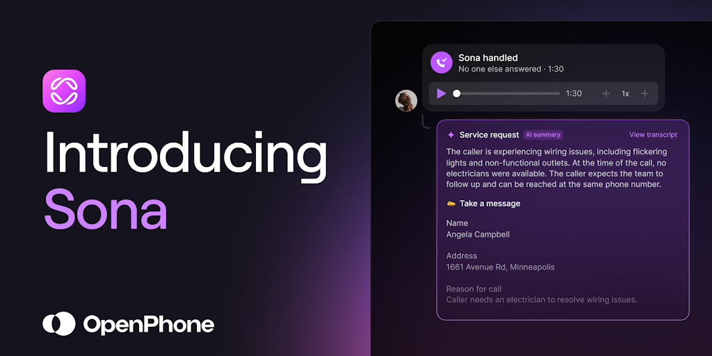 Sona by OpenPhone - Voice AI agent, built right in OpenPhone | Product Hunt