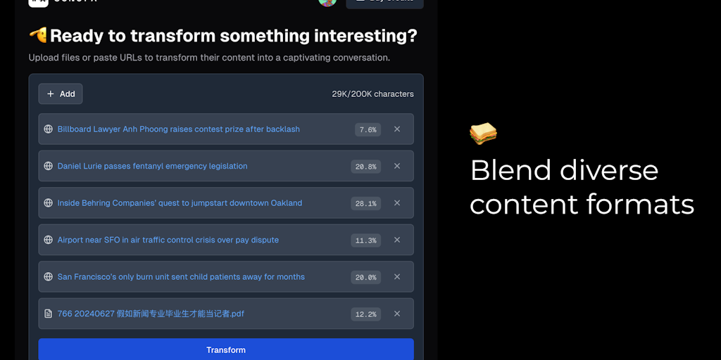 Sonofa is an AI tool that transforms any content – from lengthy blog articles to complex arXiv papers, in any language – into engaging podcasts. Experience your content in a brain-friendly way, anywhe