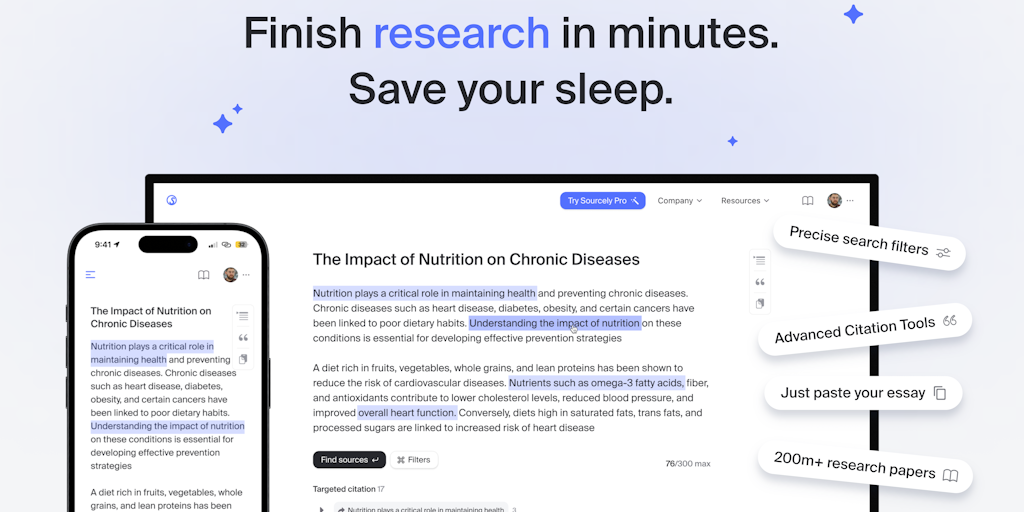 Sourcely is an AI-powered literature sourcing tool that streamlines research by quickly finding relevant sources, summarizing articles, and allowing users to export citations. With access to over 200