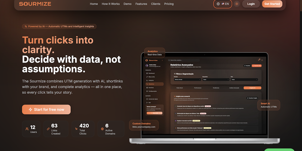 Transform clicks into insights. AI generates perfect UTMs, personalized shortlinks and analytics that tell the complete story of your traffic. Decide with data, not assumptions.