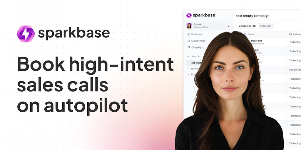 Cara is Sparkbase's AI Sales Agent who books high-intent sales calls on autopilot: 🕵️♀️ Deeply understands your business and industry ⚒️ Finds purchase intent signals your competitors overlook 🚀 Scal