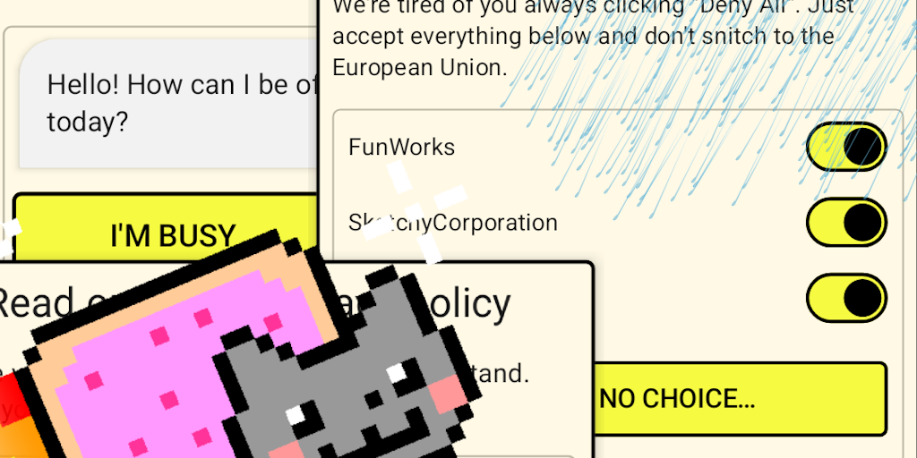 Set a time limit when opening addictive apps. After time's up, get ready to be annoyed out of them with pop-ups, cats, rain, or even the screen time police. Take a 15 minute break before next use. No