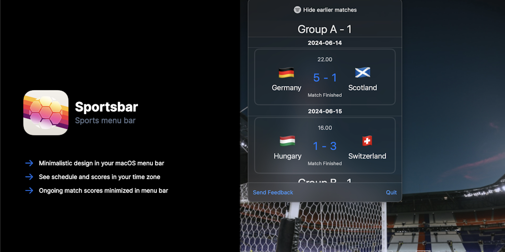 Sportsbar - macOS menu bar application for Euro2024 | Product Hunt