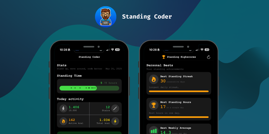 Standing Coder helps developers stay healthy with gentle reminders to stand, stretch, and move—without breaking their flow. No logins, no data collection. Just better habits, one nudge at a time.