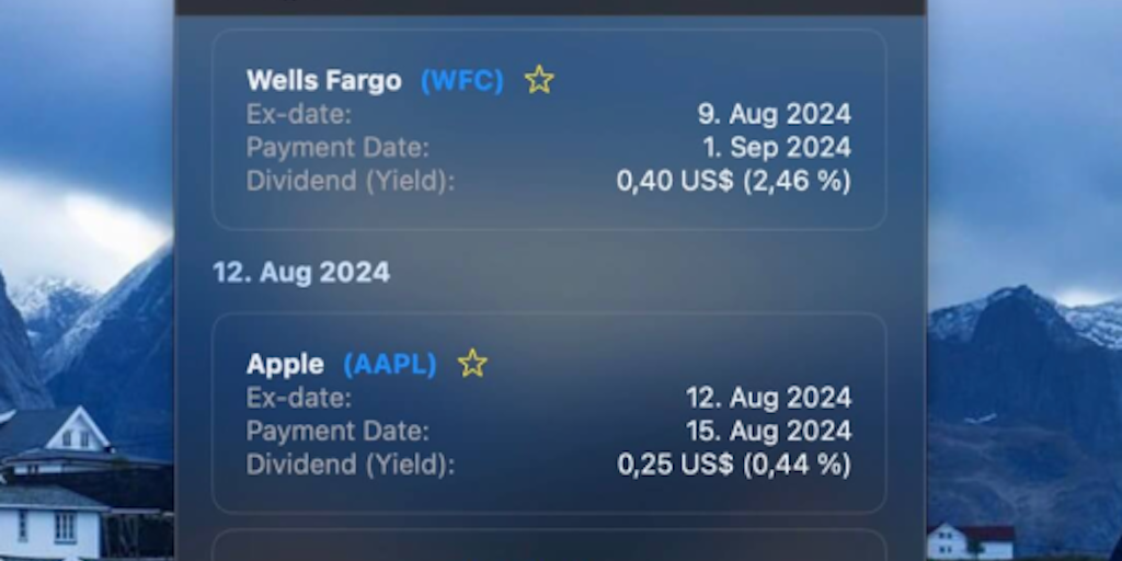 Stock calendar is a macOS menu bar app that displays upcoming stock events, such as dividends and stock splits and track updates on starred stocks