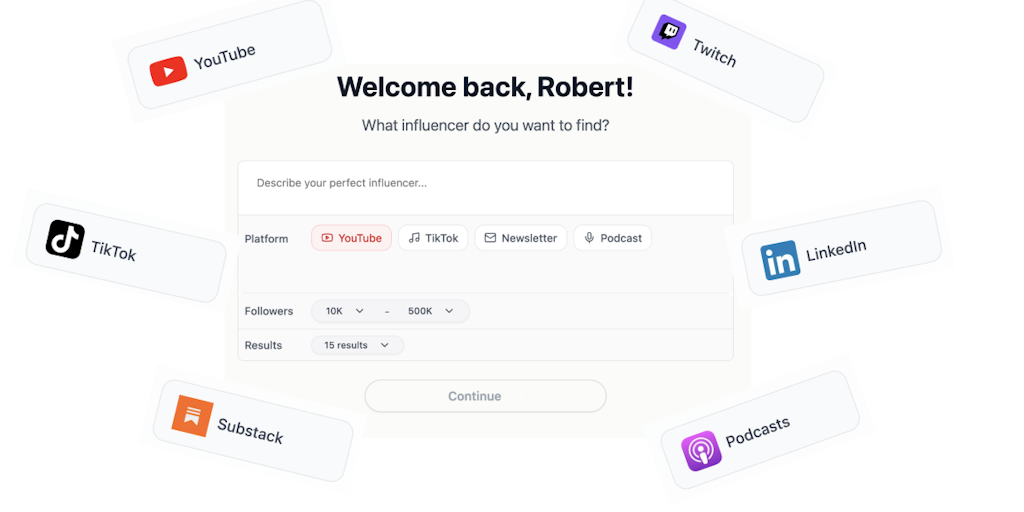 Stormy is an AI agent for influencer marketing. Give it a brief + budget; it finds the right YouTube/TikTok creators from public data, scores fit, drafts/personalizes outreach, sends DMs/emails, track
