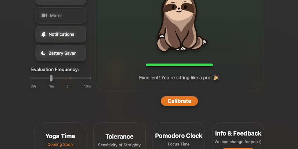 Straighty.app: Your AI Sloth Companion for Perfect Posture! | Product Hunt
