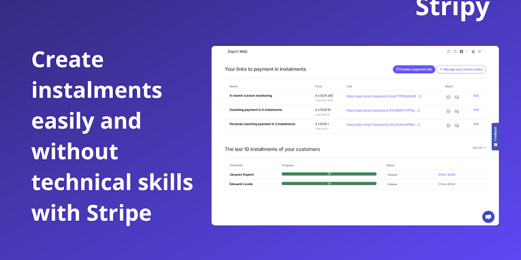 Stripy lets freelancers and small businesses offer installment payments via Stripe. Create a link in seconds, share it, and Stripy handles the rest. No code, no hassle — just simple, flexible payments
