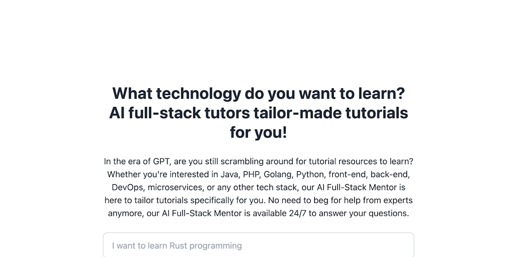In the era of GPT, are you still scrambling around for tutorial resources to learn? Whether you're interested in Java, PHP, Golang, Python, DevOps, or any other tech stack, our AI Full-Stack Mentor is
