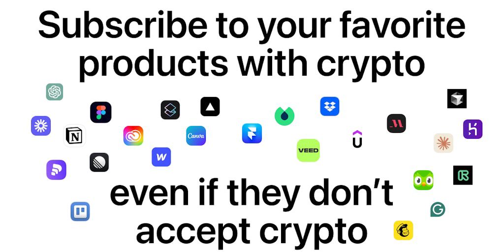 Subscribe with crypto to any SaaS in the world, even if they don't accept crypto.
