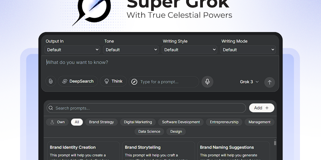 Power your Grok experience with custom prompts, voice input, multiple languages, and advanced chat modes for smarter conversations.