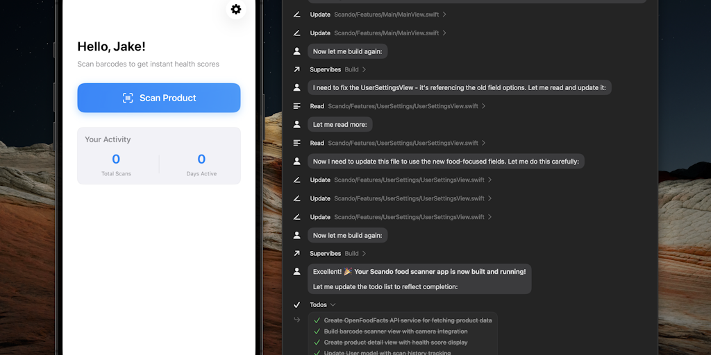Supervibes is the best vibecoding tool for iOS apps — the first made for Swift. Its lets you build, run, and ship real apps with or without Xcode. Start from scratch or import your existing project. O