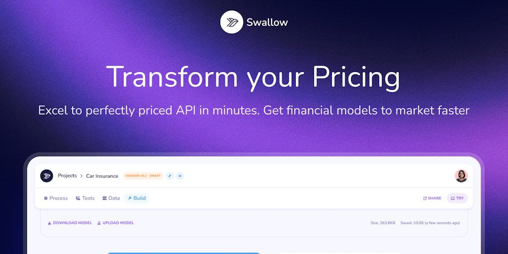 Transform how you build, test, and deploy pricing models. Swallow combines AI agents and no-code tools to help teams confidently create enterprise-ready pricing APIs and quote forms direct from Excel