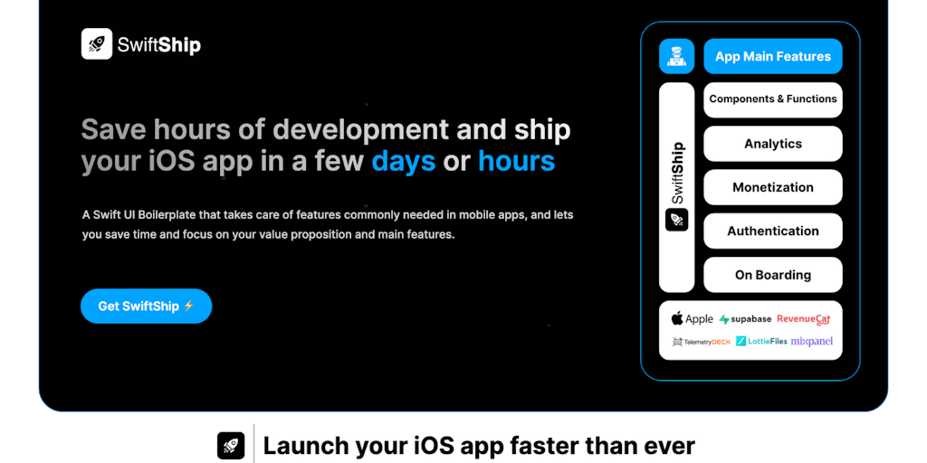 SwiftShip - Build and Ship your iOS app in a few days or hours | Product Hunt