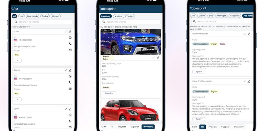 TableSprint is a platform that enables superfast app development using sheet data. It offers various elements as sheets, forms, catalog view, charts, kanban, AI writer, barcode scanner which makes it