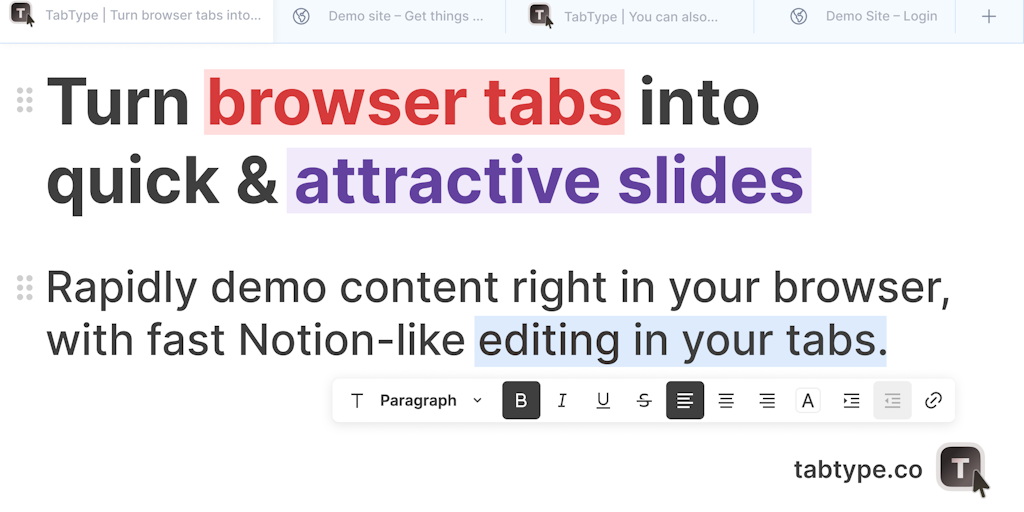 TabType - Turn browser tabs into attractive inline slides | Product Hunt