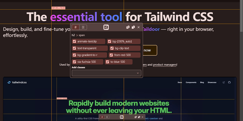 The essential tool for Tailwind CSS Design, build, and fine-tune your Tailwind website visually with Taildoor — right in your browser, effortlessly.