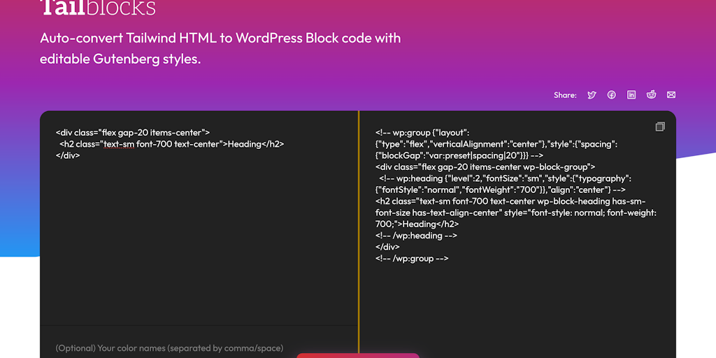 Tailwind to WordPress Blocks - Turn Tailwind into editable WP Block styles - develop faster | Product Hunt