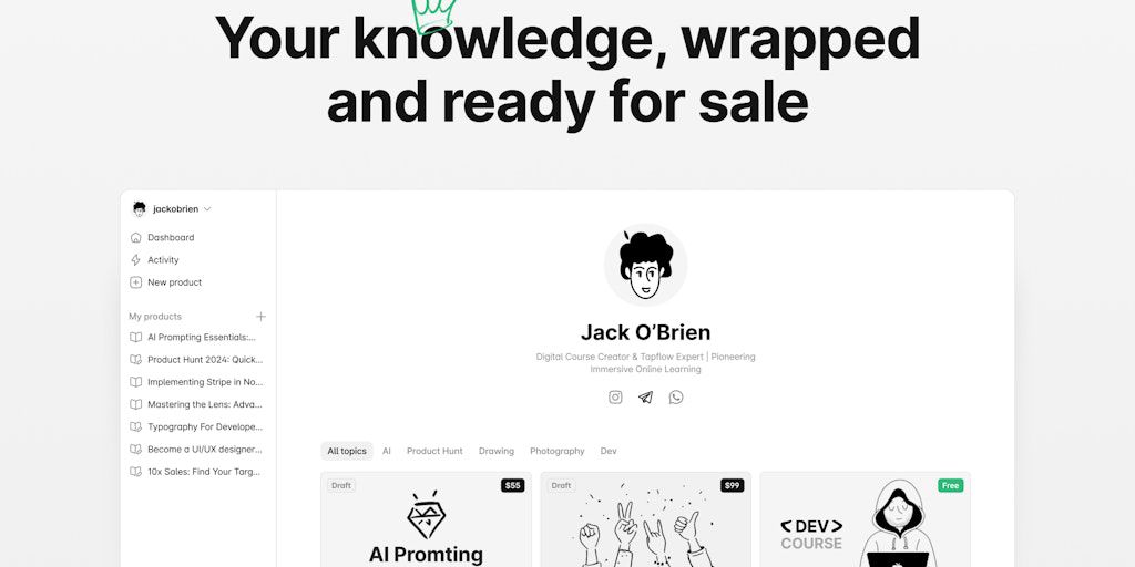 Tapflow 1.0 - Your knowledge, wrapped and ready for sale | Product Hunt