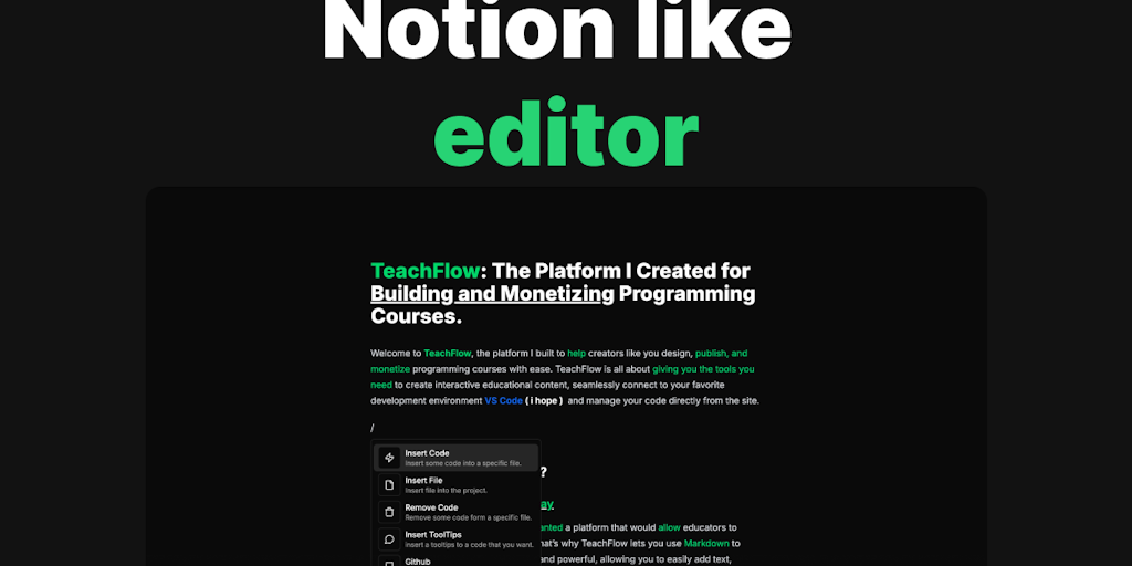 Use the power of the web on local. TeachFlow is a platform for developers to learn and share their knowledge. Use markdown to create awesome course and with some special component connect with the loc