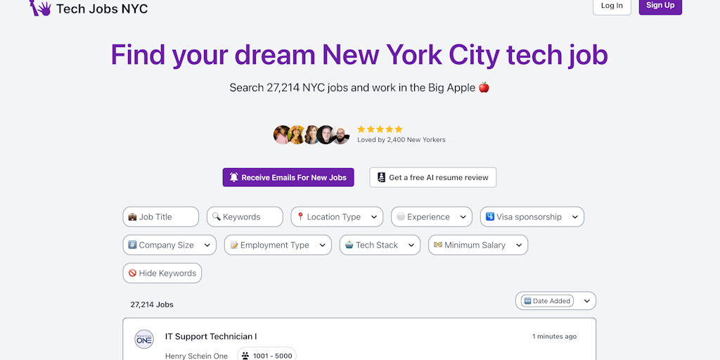 Tech Jobs NYC - Search 25,000+ tech jobs and work in the Big Apple 🗽 | Product Hunt
