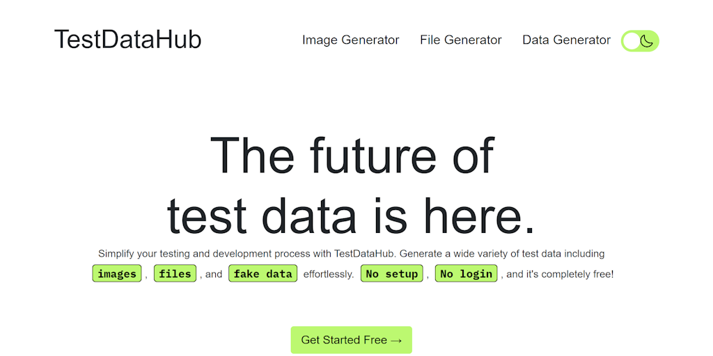 TestDataHub offers a suite of tools for generating realistic test data including dummy images, fake files, and comprehensive fake data. Perfect for developers, testers, and data scientists.