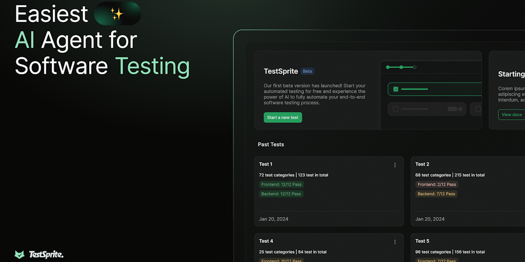 TestSprite 1.0 - First AI agent automating entire software testing process | Product Hunt