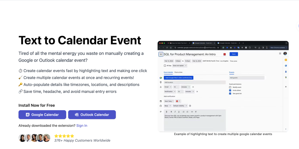 Text to Calendar - Easily create a calendar event from highlighted text | Product Hunt